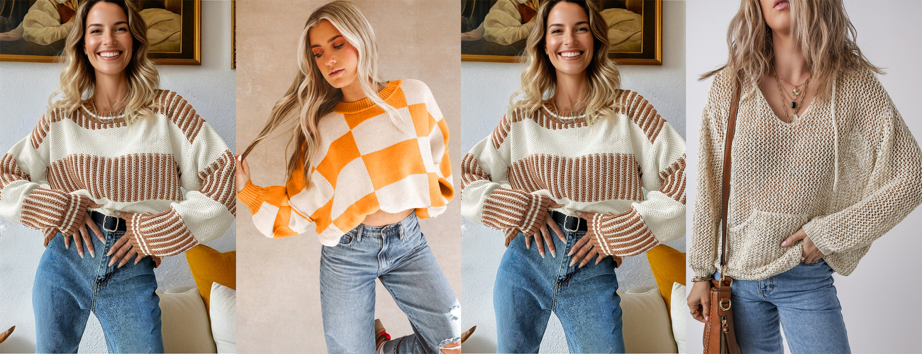 Horse Shoe Pattern Contrast Trim Short Sleeve Sweater